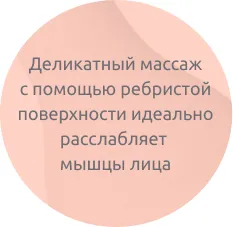 Кроме того, что щеточка идеально очищает Ваши поры от загрязнений, сохраняя молодость Вашей кожи и ее сияние, она еще производит деликатный массаж кожи лица с помощью специальной рифленой поверхности с обратной стороны щеточки, что активизирует кровообращение, улучшает обмен веществ, стимулирует регенерацию новых клеток кожи, омолаживает и борется с мимическими морщинами