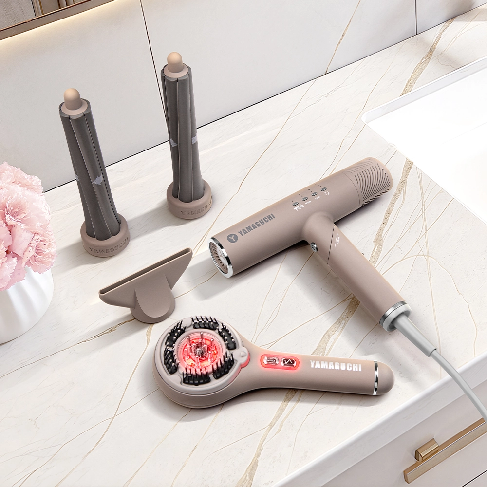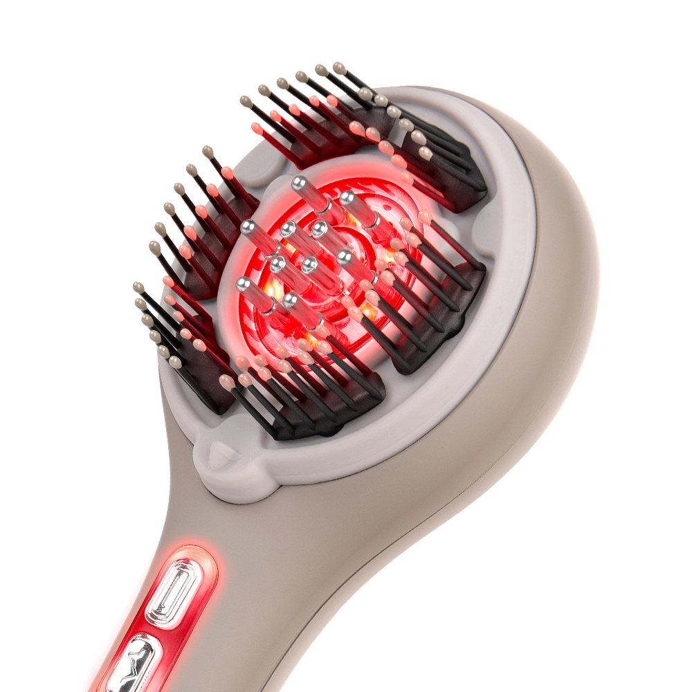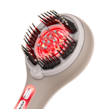 Стильный массажер для головы и лица, который объединил последние косметологические разработки. 66 мягких щетинок с изгибом бережно разминают кожу, снимая напряжение и улучшая кровообращение. Вы можете выбрать один из трех уровней интенсивности: от легких успокаивающих движений до глубокого тонизирующего массажа. Технологии микротоков и красного света пробуждают волосяные луковицы, помогая сократить выпадение волос. Во время массажа вы можете нанести уходовое средство: специальный роллер равномерно распределит его у корней для лучшего усвоения. Уже после первых применений вы заметите, что волосы стали лучше.