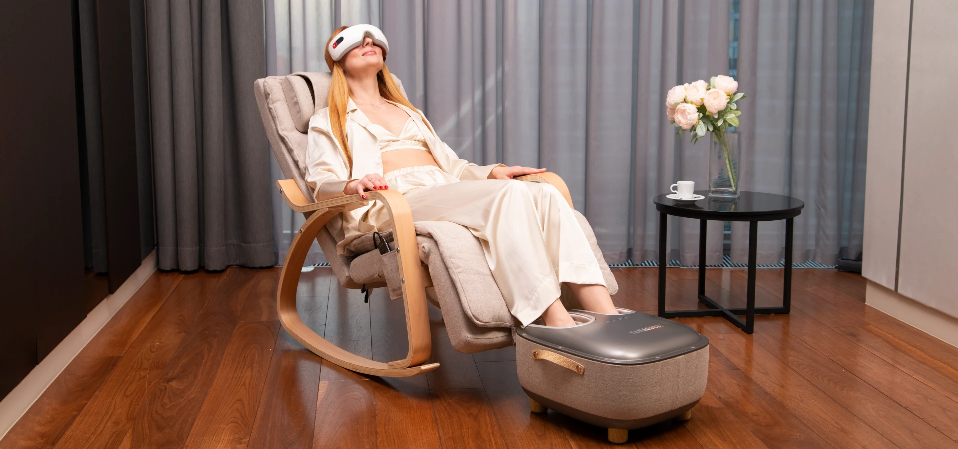 Комплект из массажного пуфика и кресла-качалки Liberty — это практичность, функциональность и уют природных материалов, которые воссоздают в помещении тёплую атмосферу.