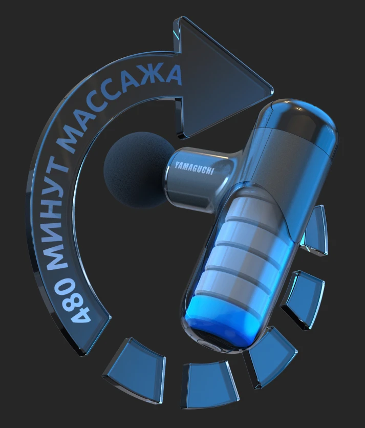 Время непрерывной работы аккумулятора Yamaguchi Massage Gun Mini 2 составляет 8 ч, что рассчитано на 48 сеансов массажа.