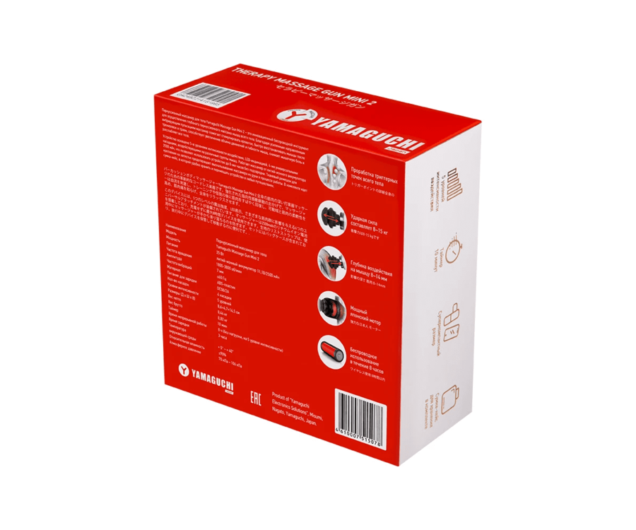 Yamaguchi Massage Gun Mini 2 эффективно прорабатывает триггерные точки, облегчает боль, улучшает состояние мышечных тканей.