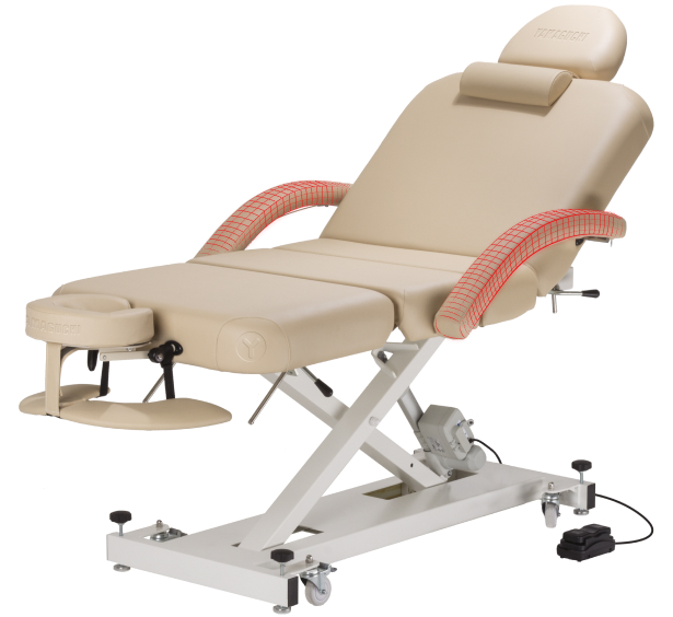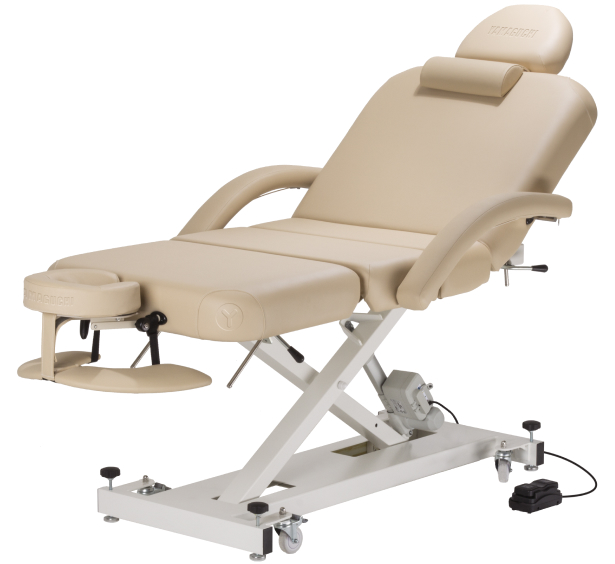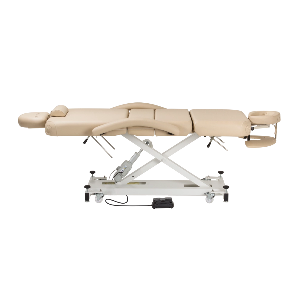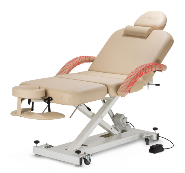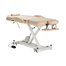 Высота массажного стола изменяется простым нажатием педали, что очень удобно для массажиста (53-99 см).