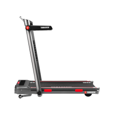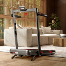 Ультратонкая беговая дорожка с подъёмом, имитирующая движение по естественной поверхности с перепадом высот. Подъёмный механизм Incline обеспечивает регулировку угла наклона беговой дорожки от 0 до 12°. Вместе с увеличением угла наклона меняется интенсивность нагрузки: чем выше, тем интенсивнее. Пользователь может испытать себя двумя видами нагрузки, в одном режиме бегая со скоростью до 6 км/ч, а в другом — со скоростью до 14 км/ч. Спринт по ровной местности закладывает основу мастерства, позволяя овладеть всеми фазами бега на уровне профи. Трейлраннинг же идеален для тех, кто жаждет горных испытаний с перепадом высот и не боится испытать свои пределы. У каждого режима есть свой собственный, обновлённый экран: светодиодный — в раме, сенсорный — в поручне. Оба отображают тренировочные данные: общее число шагов, пройденное расстояние, угол наклона, время, скорость бега и расчёт сожжённых калорий. Дорожка подойдёт для пользователей с разным уровнем подготовки, т. к., помимо режимов, имеет 15 встроенных тренировок (когда поручни опущены, между ними можно переключаться с помощью дистанционного пульта).