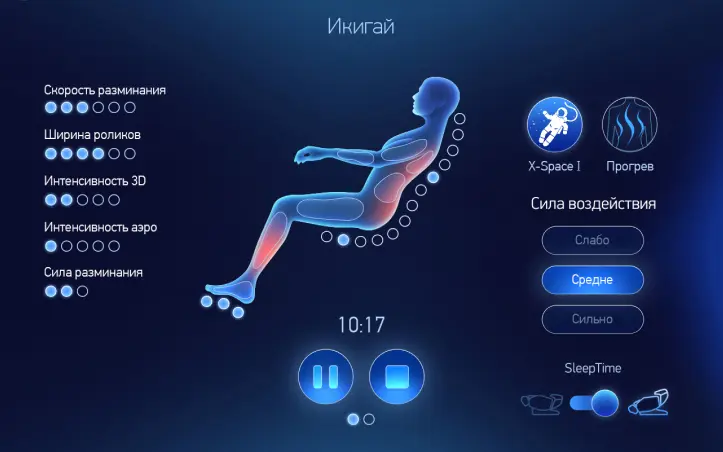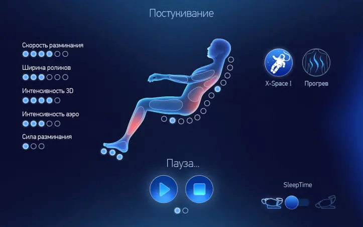 Массажное кресло оснащено удобным 8-дюймовым сенсорным пультом, позволяющим управлять функциями и настройками ключевых систем кресла.