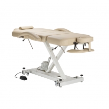 Высота массажного стола изменяется простым нажатием педали, что очень удобно для массажиста (53-99 см).